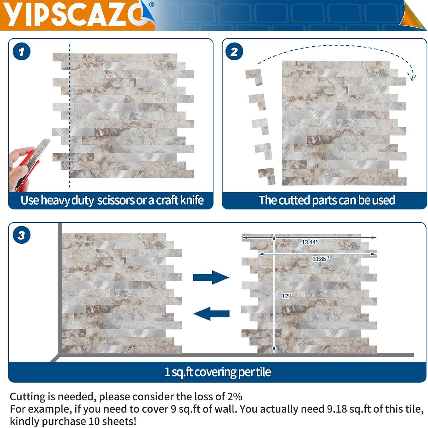 Der Abstand zwischen den einzelnen Fliesen besteht aus 3M-Klebeschaum. Sie können die Fliesen einfach mit einem Universalmesser trennen. Wenn Sie Fliesen schneiden müssen, um eine gerade Kante zu erhalten, verwenden Sie bitte eine gute Industrieschere oder ein Skalpell. Die Rückseite der Fliese besteht aus einer PVC-Verbundschicht, die sich leichter schneiden lässt als die Metalloberfläche.