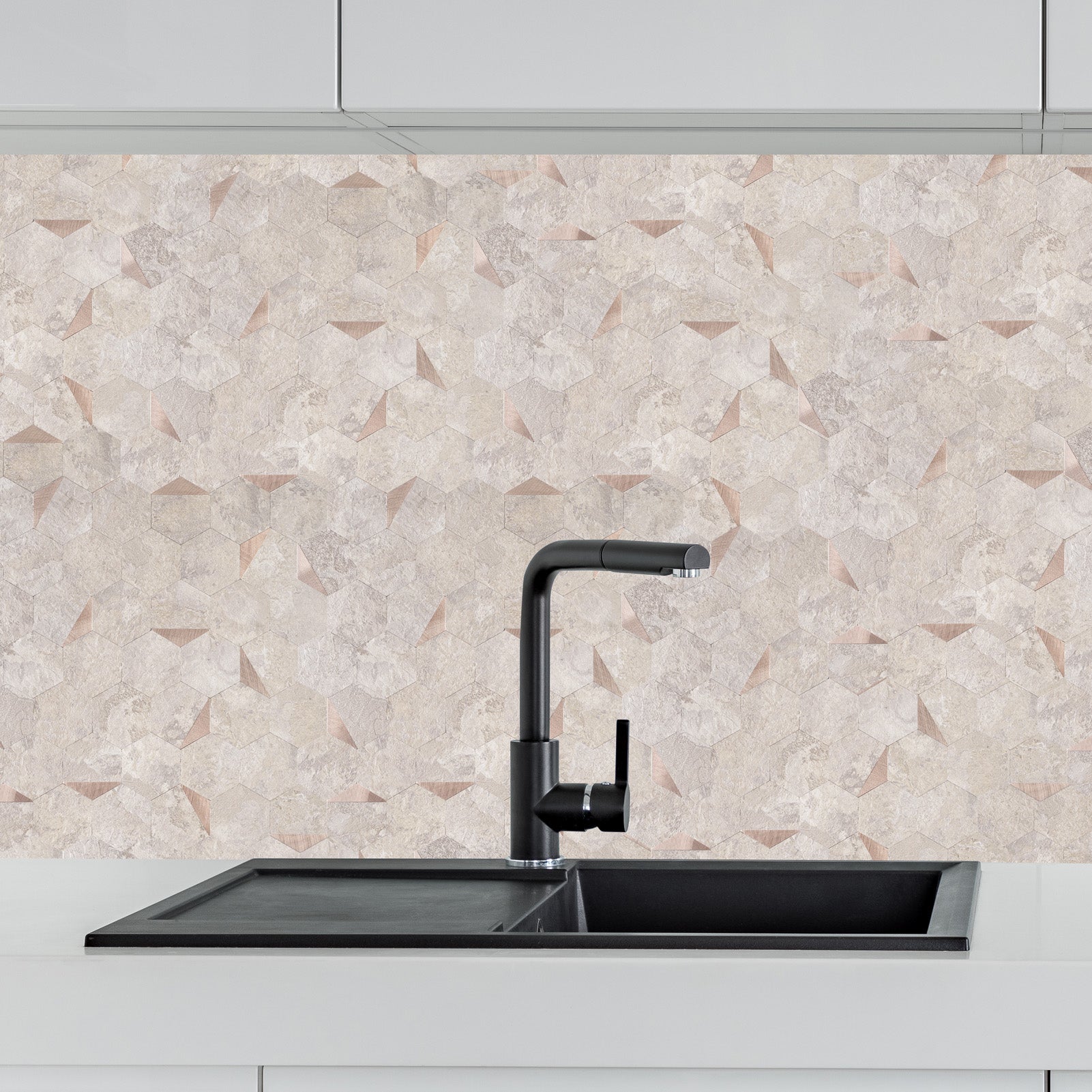 12" x 12" Hexagon Peel and Stick Tiles Beige Stone Rock Stick on Backsplash