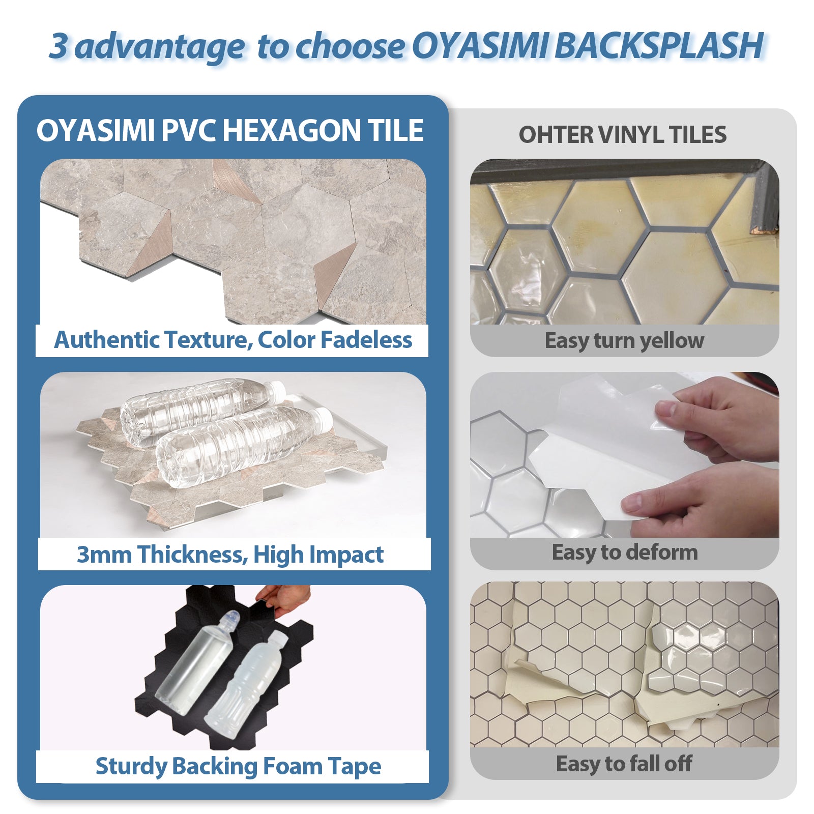 Achieve a sleek, contemporary vibe instantly with Yipscazo's Peel and Stick Hexagon Backsplash Tiles. Crafted from sturdy PVC combined with metals, these tiles promise lasting durability while injecting bold sophistication into your space.