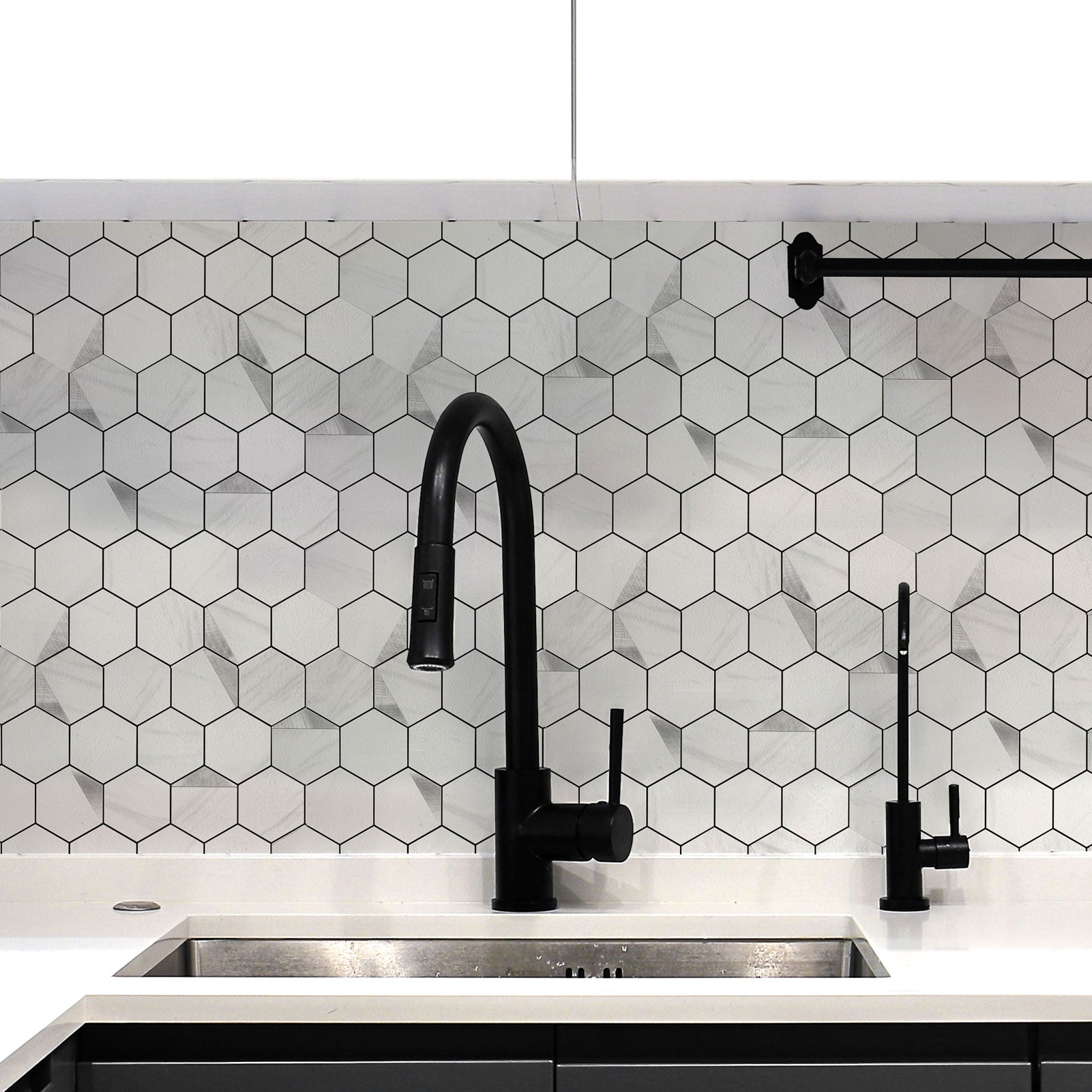 12" x 12" Hexagon Peel and Stick Tiles Jazz White Stick on Backsplash