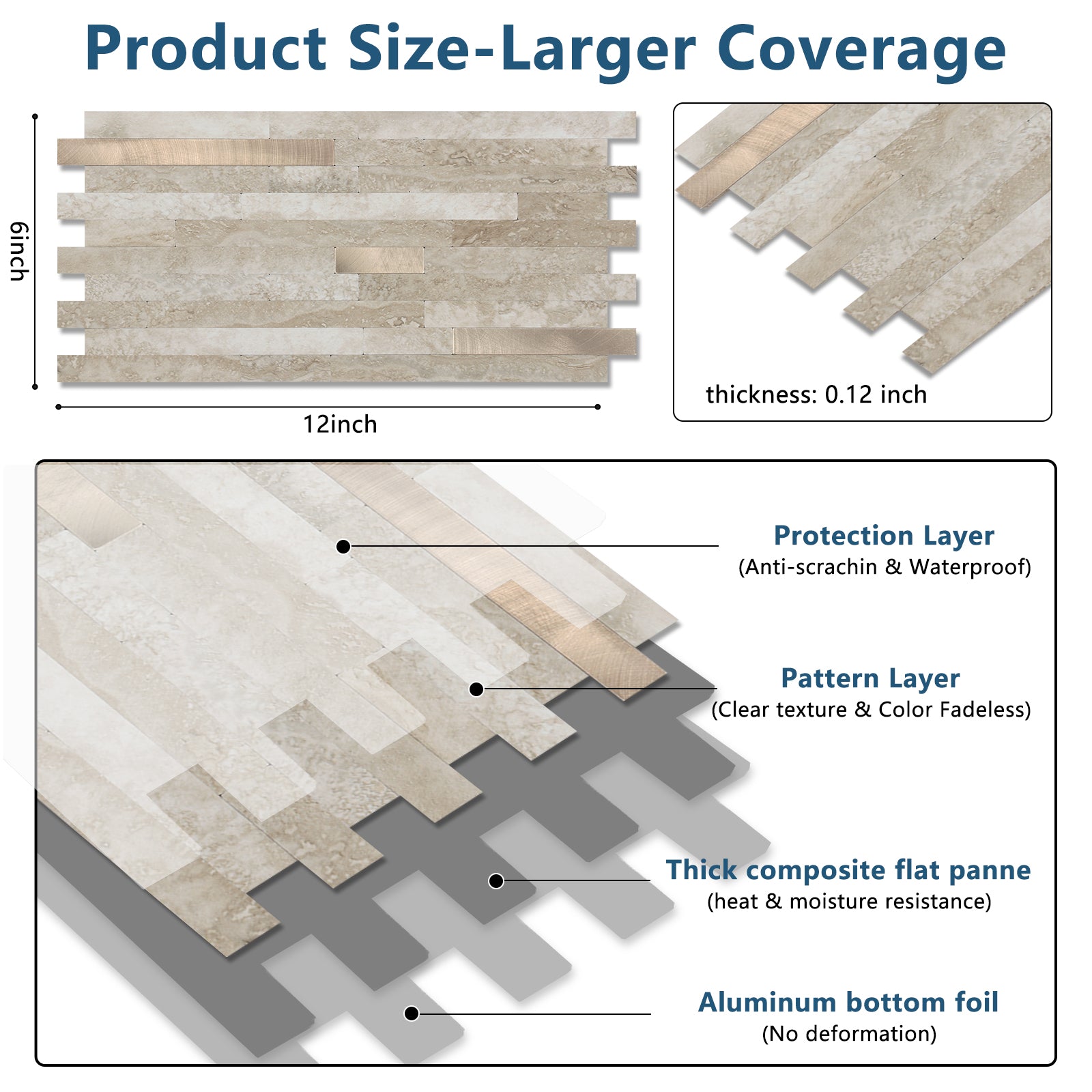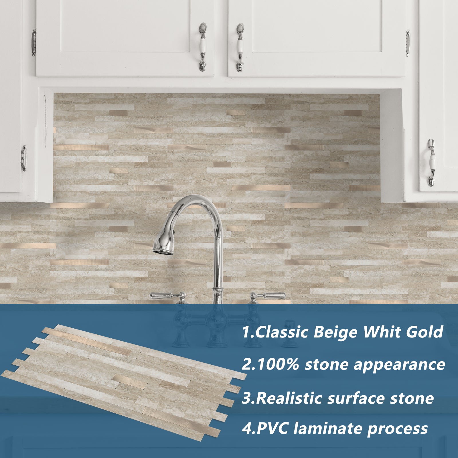 6" X 12" Rock Peel and Stick Backsplash Linear Blend Tile