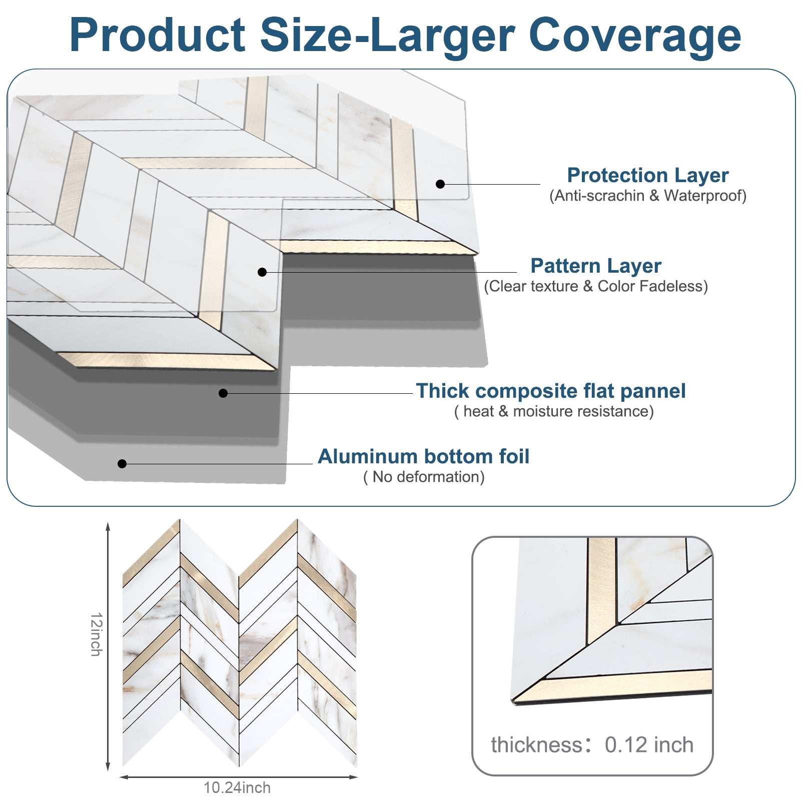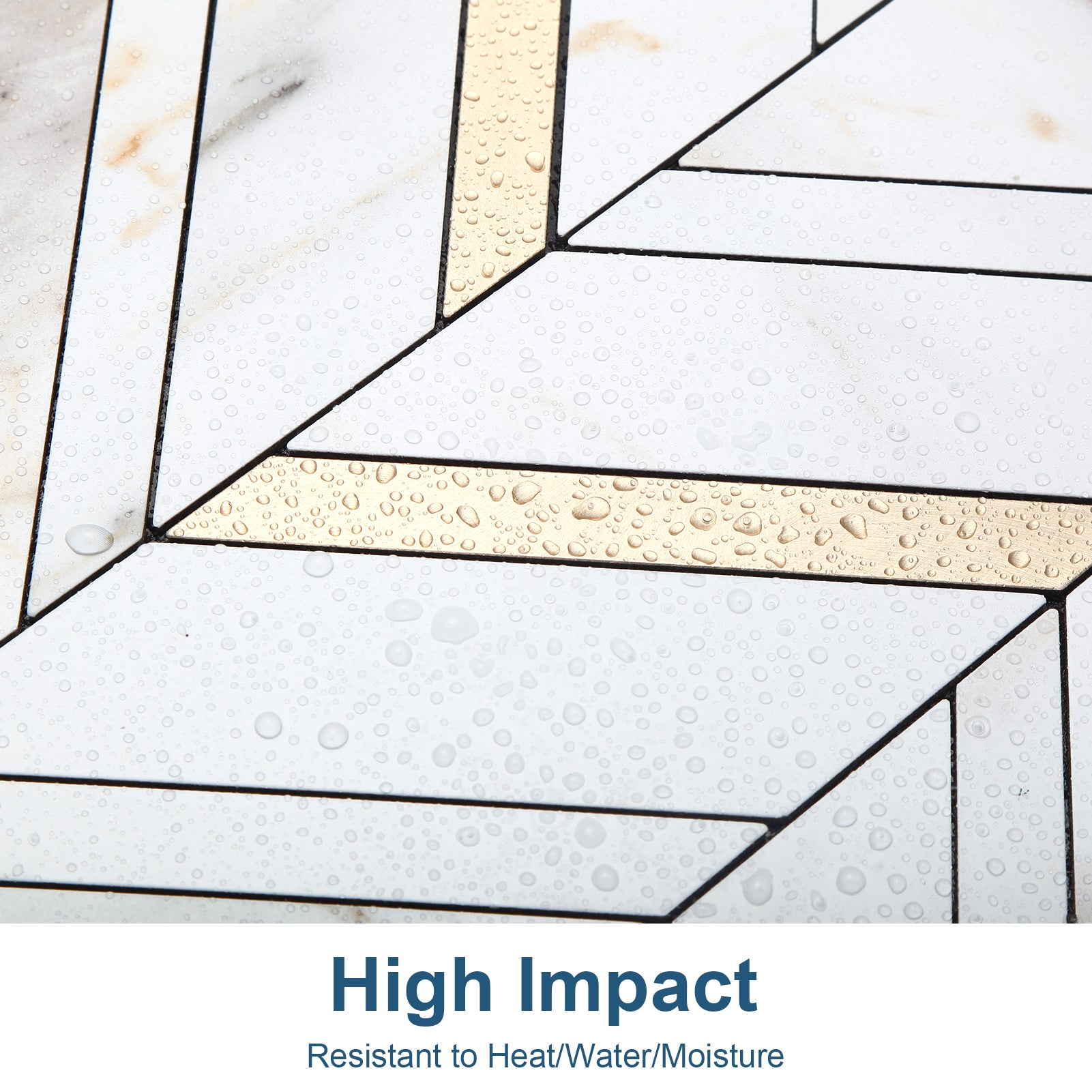 12" X 10" Marble Calacata Mixed Gold Herringbone Backsplash Peel and Stick Tile