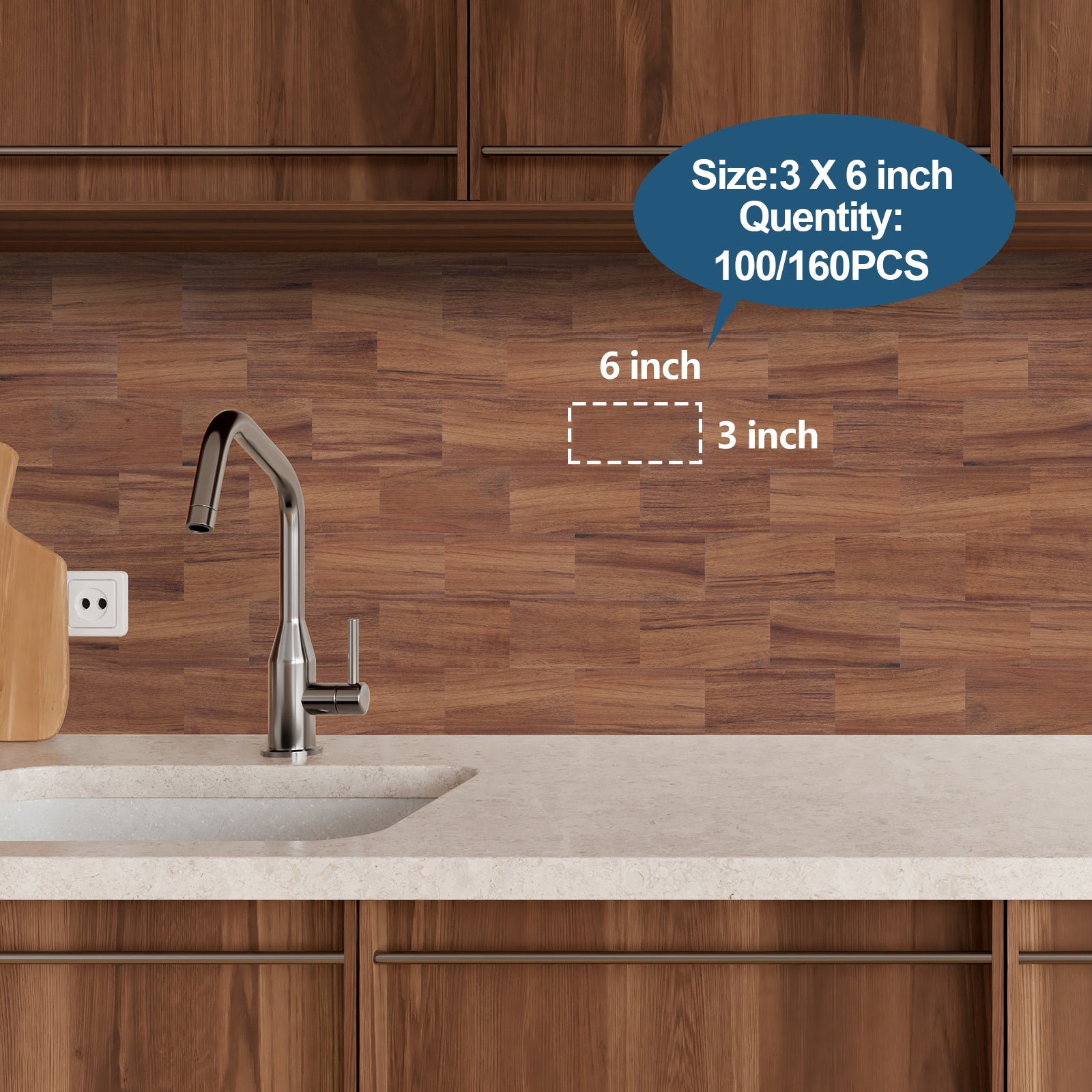 Die Oberfläche besteht aus echter Textur und Metallfolie, nicht aus 3D-Gel. Sie verfärbt sich nicht und lässt sich leicht abwischen, um Flecken zu entfernen. Spritzer sind kein Problem. Es ist absolut widerstandsfähig gegen den Einsatz in einer echten Küche und einem Badezimmer.