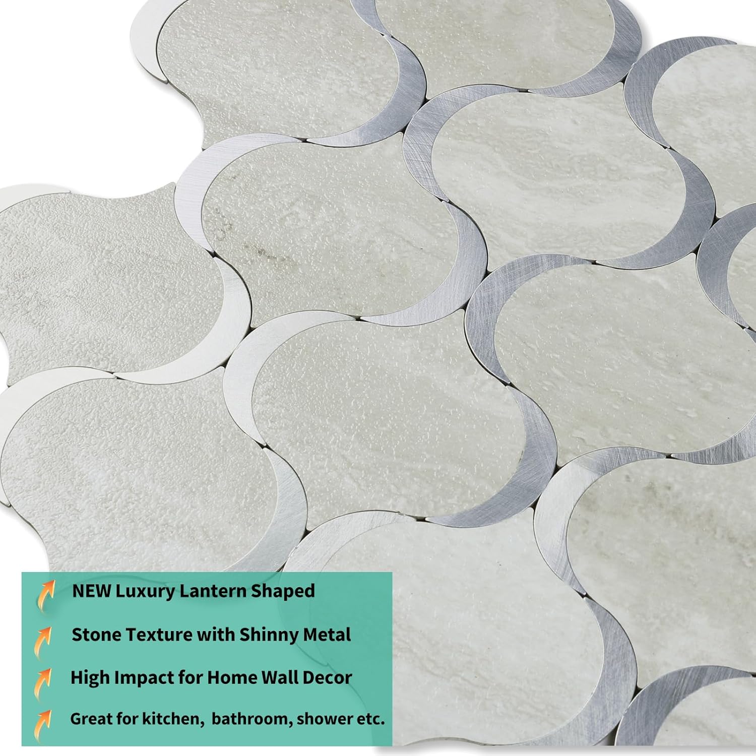 10.6" X 11.3" Dolomite Stone Mixed Metal Silver Arabesque Peel and Stick Tile