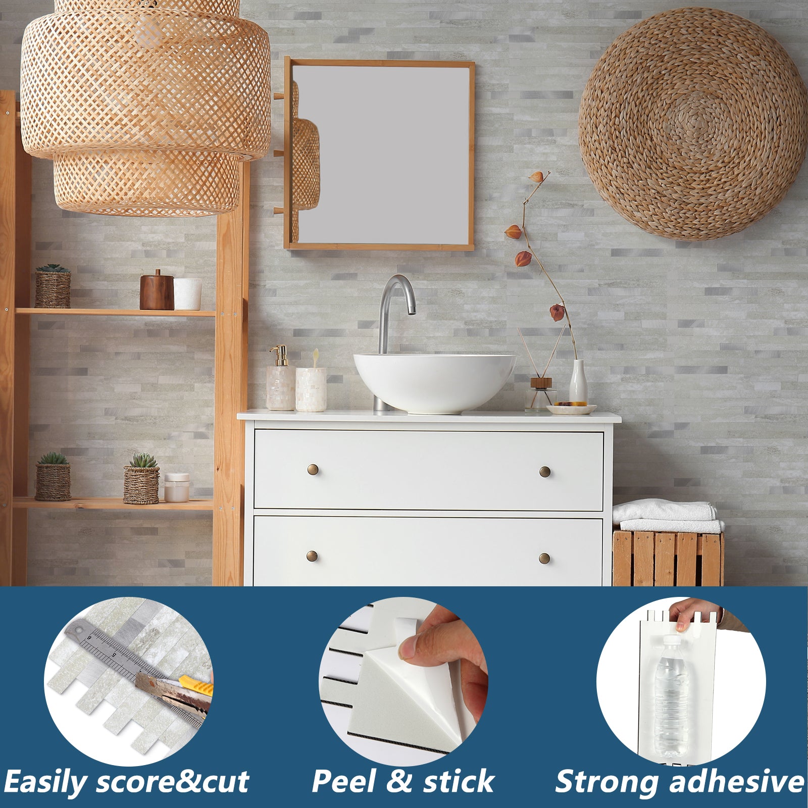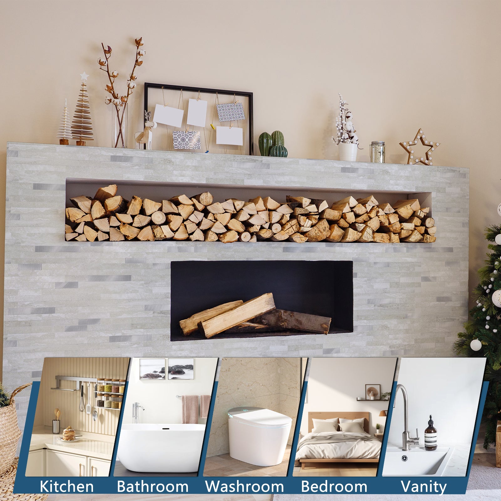 Transform your living space with the stunning Gray Beige Peel and Stick Backsplash - a high-quality addition to elevate your home's aesthetic!