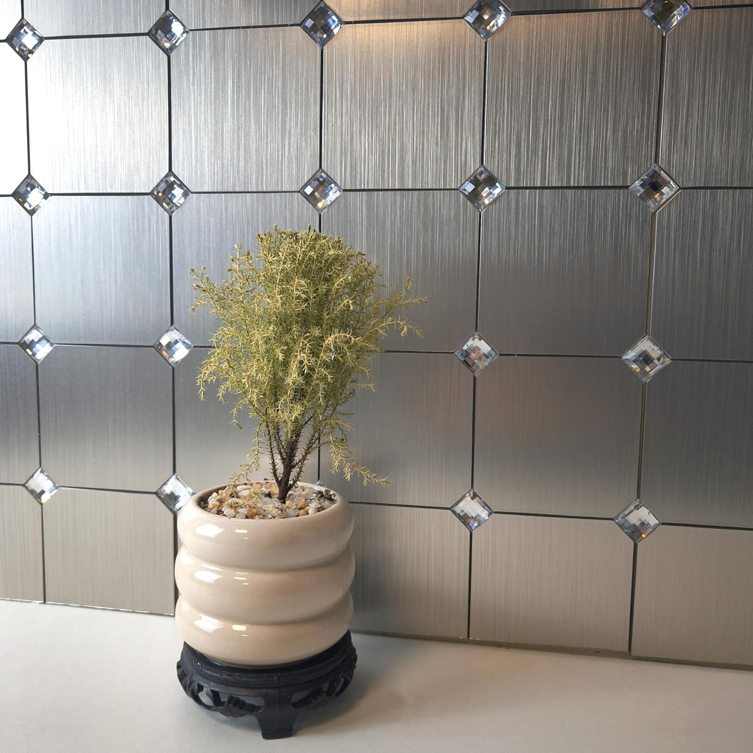 Enhance your space with Yipscazo's Metal Peel and Stick Diamonds Tile Kitchen Backsplash, adding an elegant touch. These tiles are user-friendly, making wall updates simple without caulking or creating clutter. Easily transform your room into a clean, modern space with minimal effort.