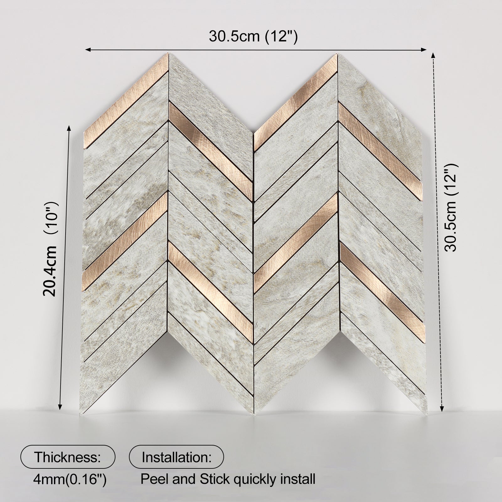 11,8" X 11,8" Beige Stein gemischt Gold Fischgrät Backsplash Peel and Stick Fliesen