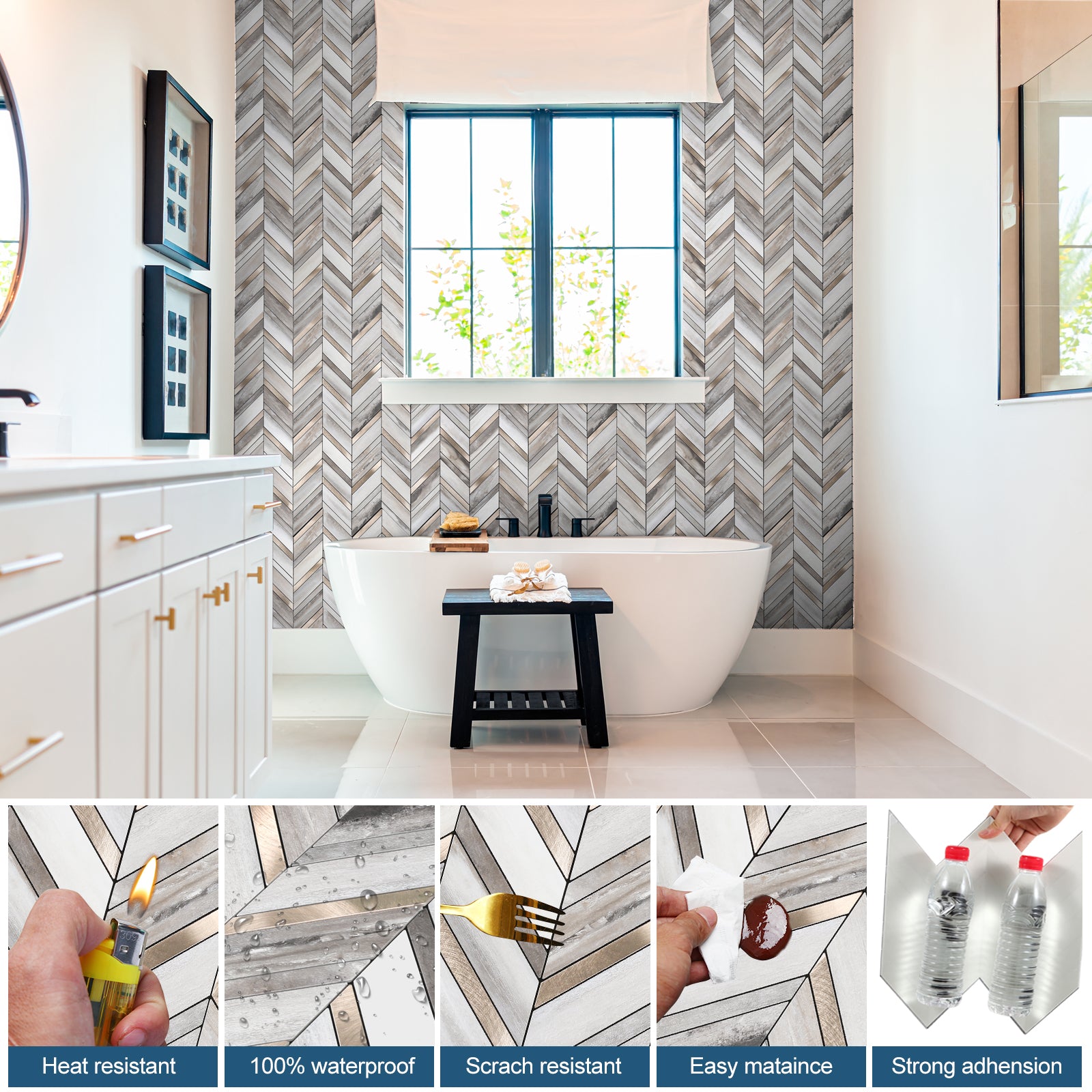 11,8" X 11,8" Beige Stein gemischt Gold Fischgrät Backsplash Peel and Stick Fliesen