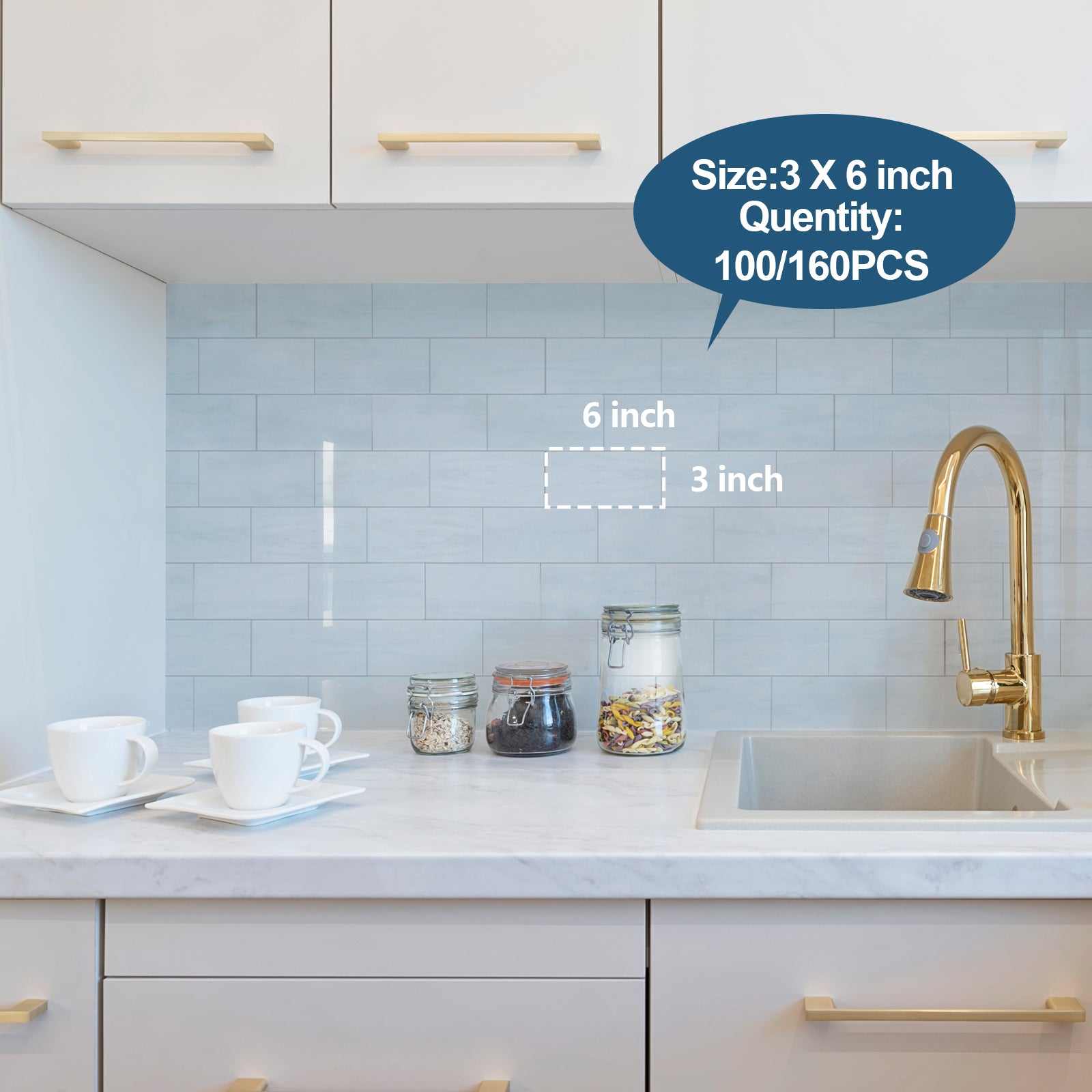 3" x 6" hautfreundliche Marmor-Spritzschutzfliese zum Abziehen und Aufkleben, halbmatte Ziegel-U-Bahn-Fliese