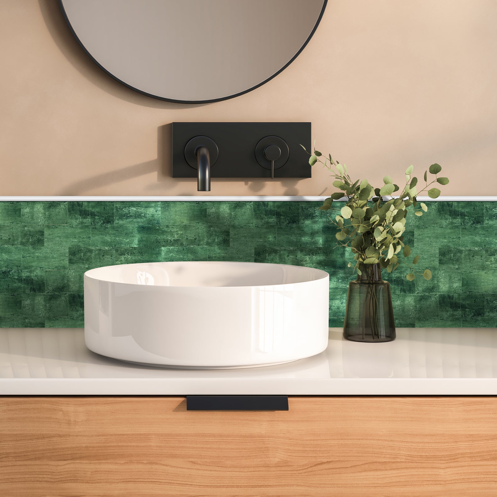 Werten Sie Ihre Wände mit der grünen Yipscazo Peel & Stick Backsplash Fliese auf. Mit ihren einfarbigen Rahmen und dem modernen Vinyl-Design verleiht diese Fliese jedem Raum einen Hauch von Eleganz. Freuen Sie sich über ein elegantes, strahlendes Finish ohne lästiges Verfugen oder Aufräumen nach der Verlegung.